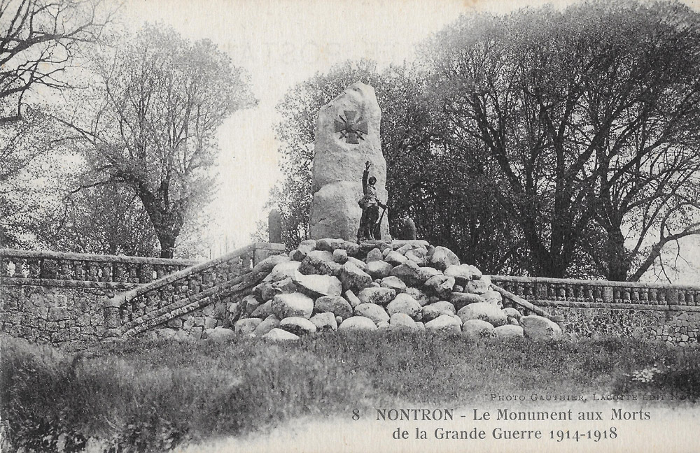 Le 29 février 1921 le Conseil Municipal confie aux deux sociétés, l'Union Nationale des Combattants et l'Union des Mutilés et Réformés, le soin de construire le monument à élever aux héros Nontronnais morts pour la patrie et à recueillir les souscriptions.