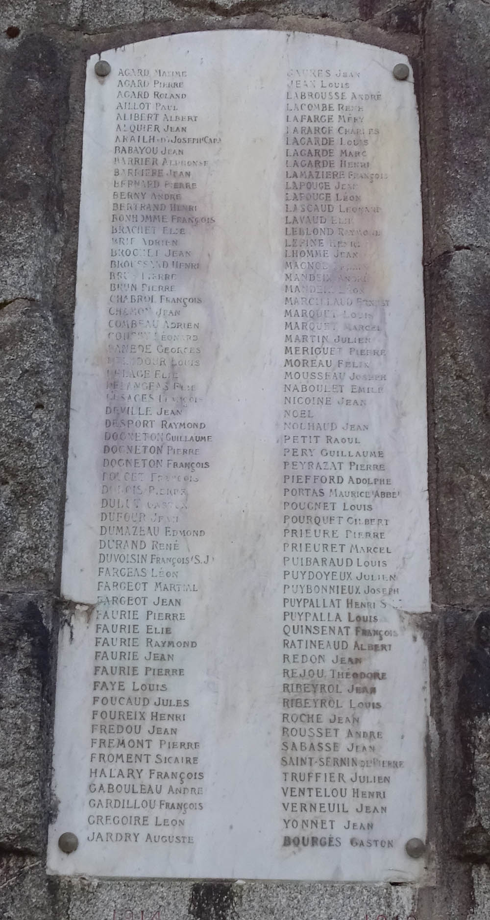 120 noms sont gravés sur la stèle et un livre de marbre recueille les noms des victimes de la seconde Guerre Mondiale.