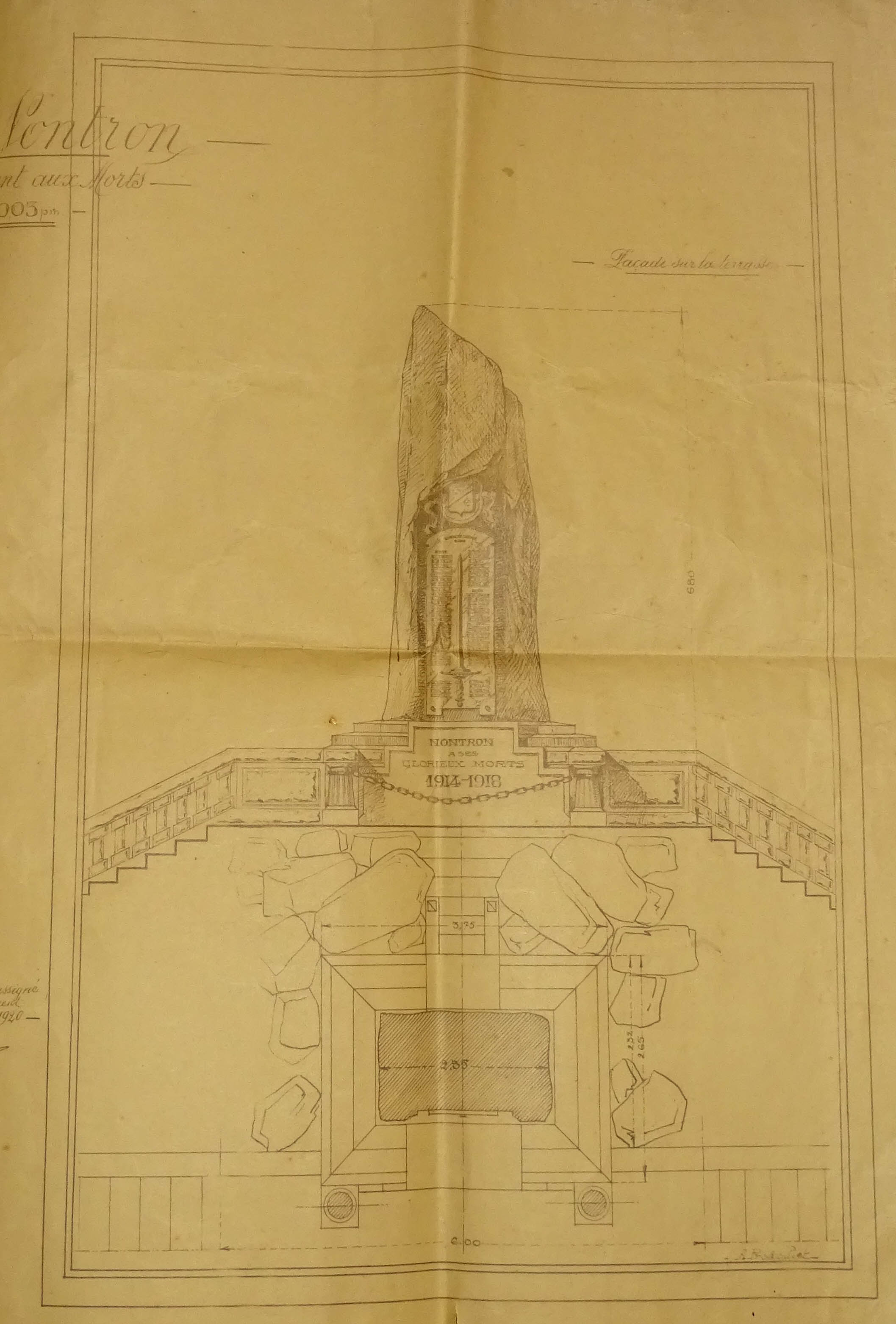 Le projet initial du monument aux morts de la ville de Nontron (Archives Mairie de Nontron)