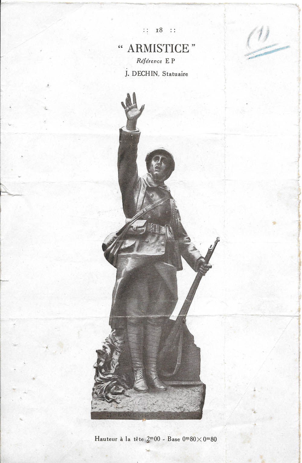 Page du catalogue ayant servi au choix de la statue qui orne le monument aux morts de la grande guerre (Archives Mairie de Nontron)