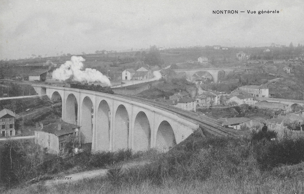 Le viaduc ferroviaire traverse la vallée du Bandiat (ligne Nontron-Thiviers) et achemine les voyageurs directement à la gare de Nontron. Sa construction s'est terminée en 1887. Inauguration en 1891 et circulation réguliére des trains à partir de 1892.