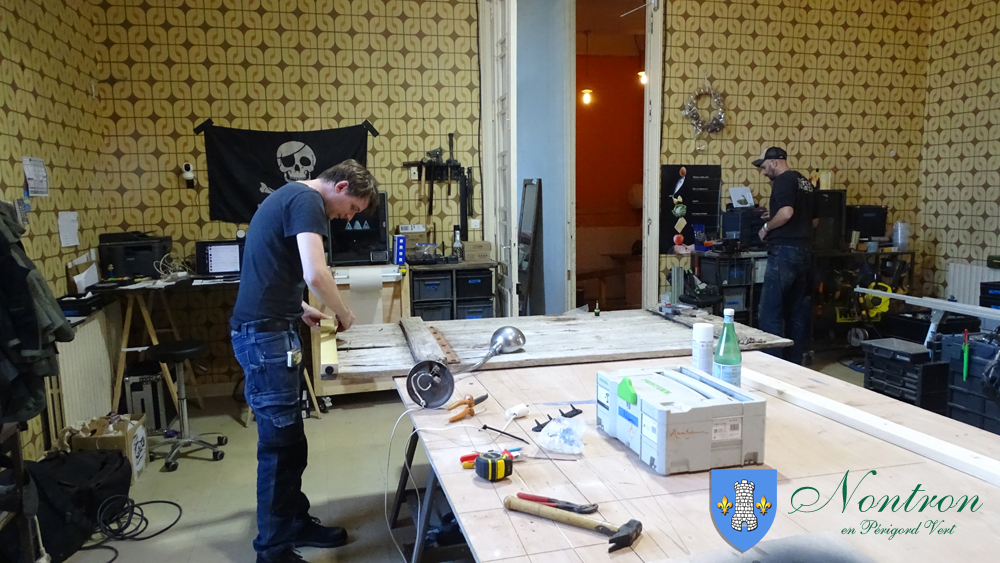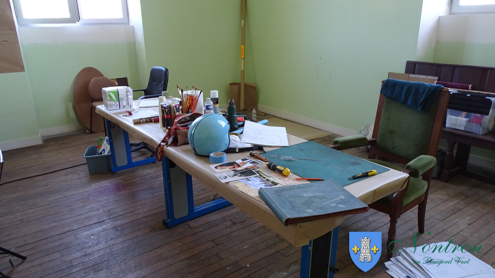 Le Chef Décorateur Jean-Marc Tran Tan Ba et son équipe à l'ancien tribunal de Nontron, transformé en Gendarmerie pour le tournage de Meurtres en Périgord Vert.