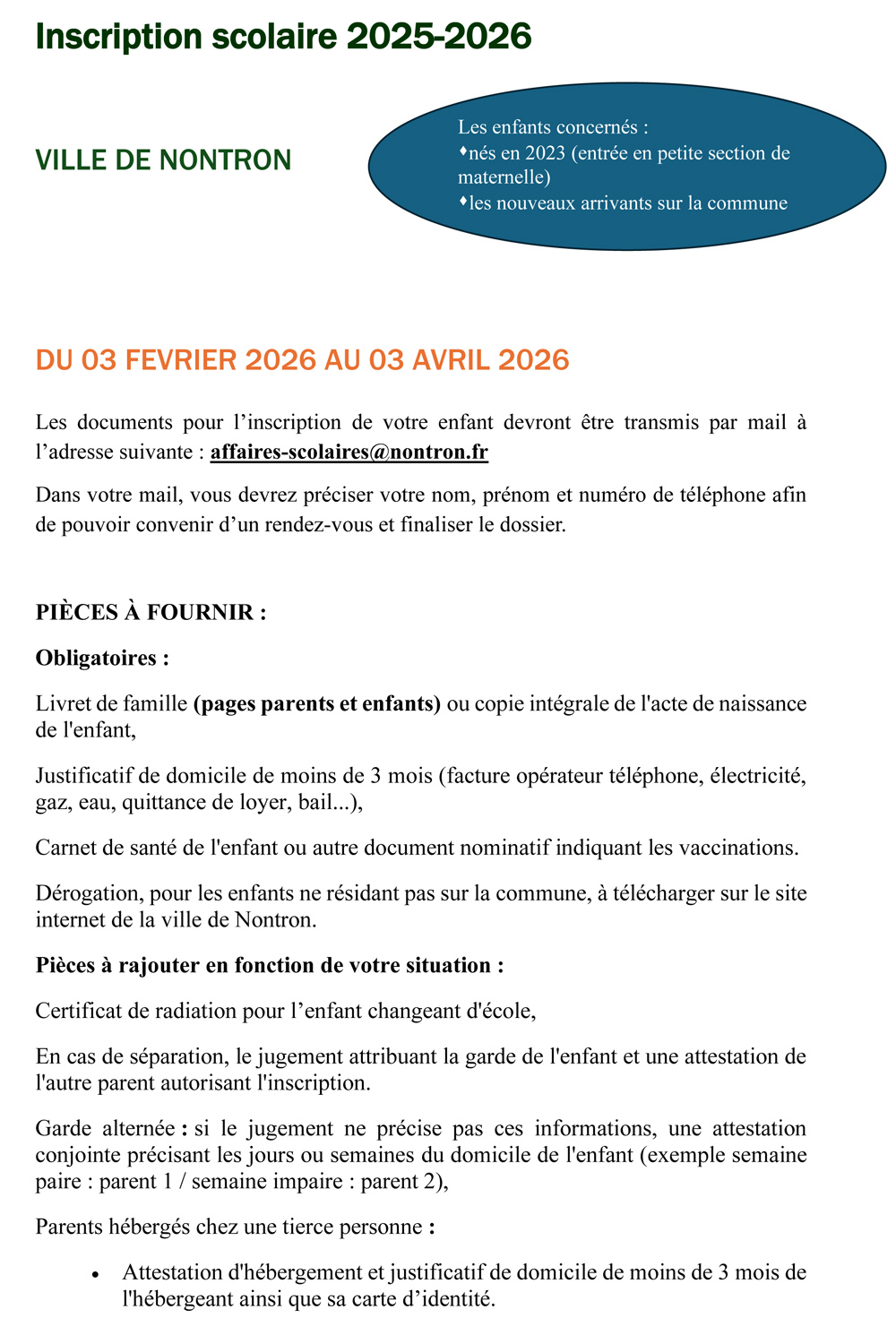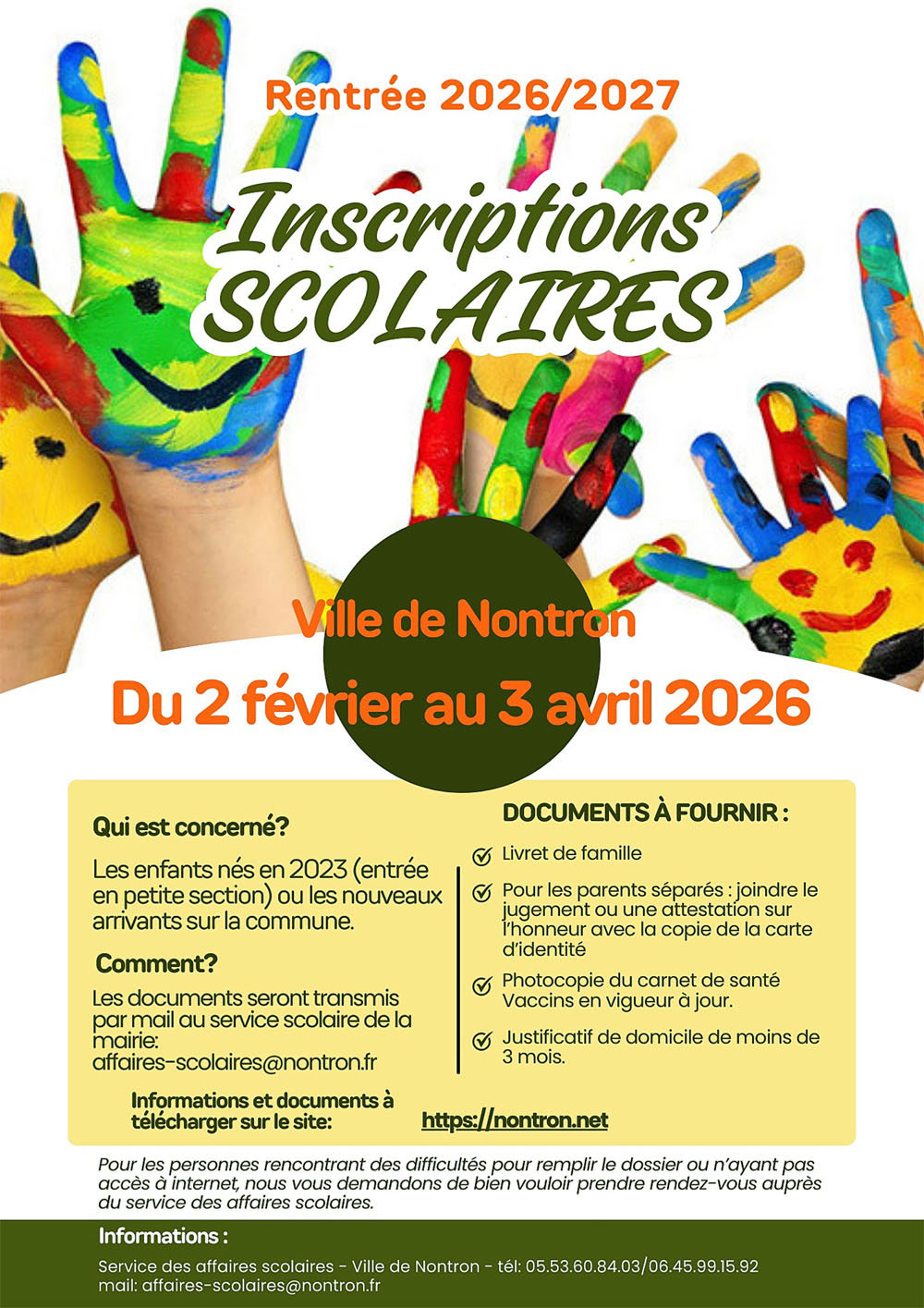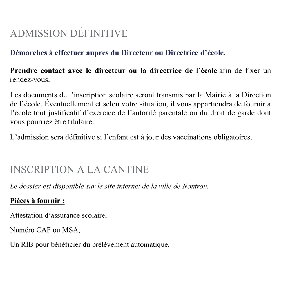 Rentrée Scolaire 2026-2027 Téléchargez le formulaire d'inscription cantine Téléchargez l'autorisation parentale de scolarisation Téléchargez la demande de dérogation hors commune Inscription bus scolaire bientôt disponible